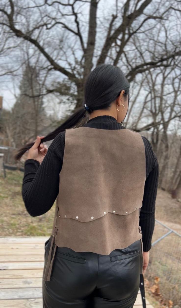 Descubre un chaleco único, elaborado a mano con cuero gamuzado. Cada pieza es trabajada por artesanos expertos, lo que garantiza una textura suave, un acabado impecable y una prenda que destaca por su belleza y autenticidad.