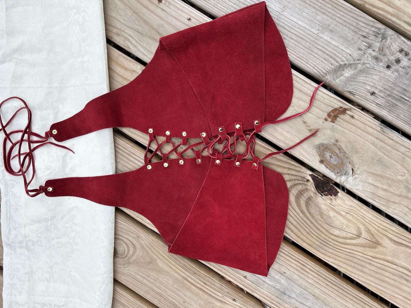 Top hecho a mano con cuero gamuzado de alta calidad en un intenso color rojo. Su bonito escote en el pecho y espalda descubierta le dan un toque atrevido y sofisticado, perfecto para destacar en cualquier ocasión.